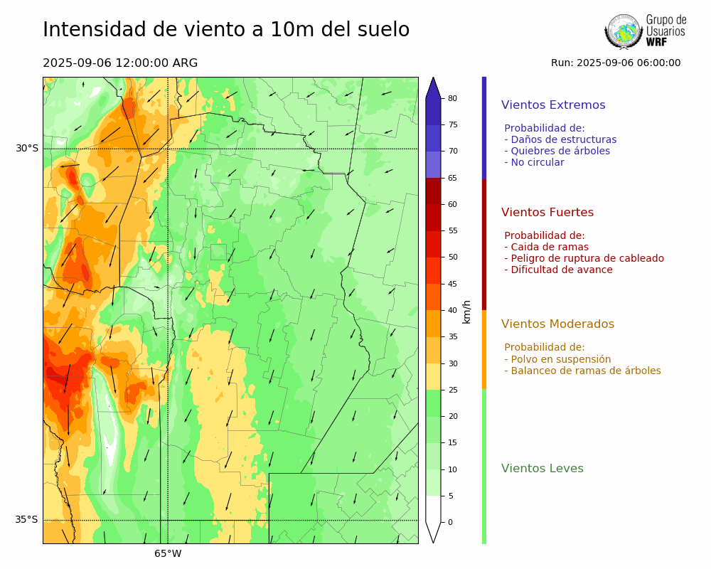 • Intensidad máxima: 19.46 km/h (06/09/2025 16hs.)