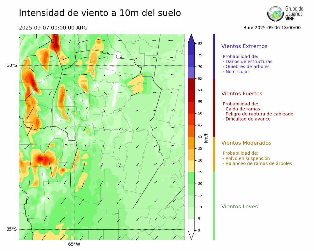• Intensidad máxima: 6.06 km/h (09/09/2025 04hs.)