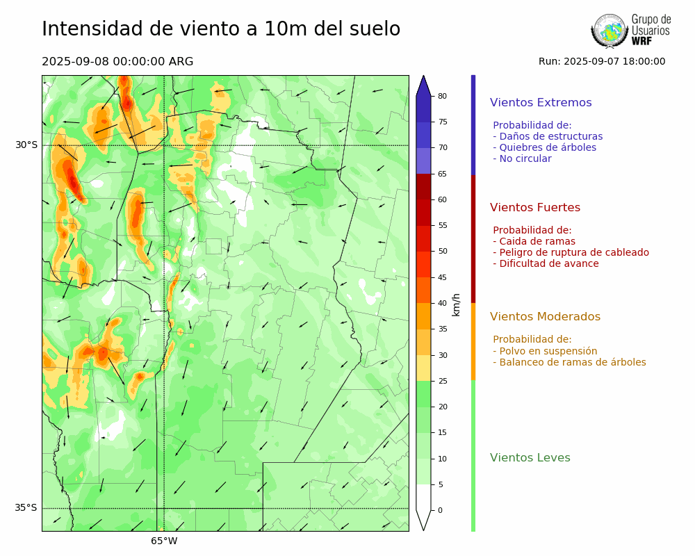• Intensidad máxima: 8.36 km/h (08/09/2025 00hs.)