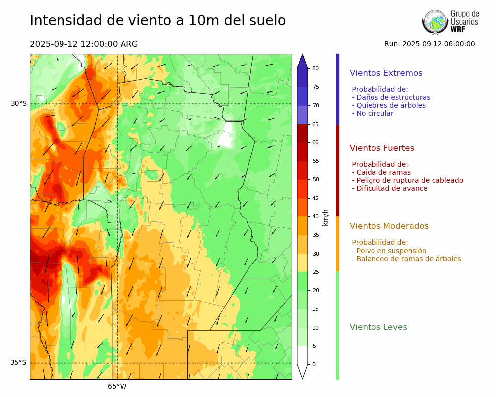 • Intensidad máxima: 21.23 km/h (12/09/2025 14hs.)