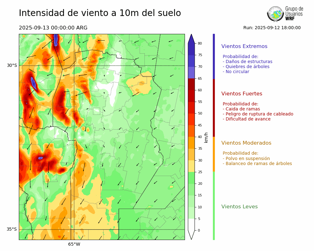 • Intensidad máxima: 17.69 km/h (13/09/2025 11hs.)