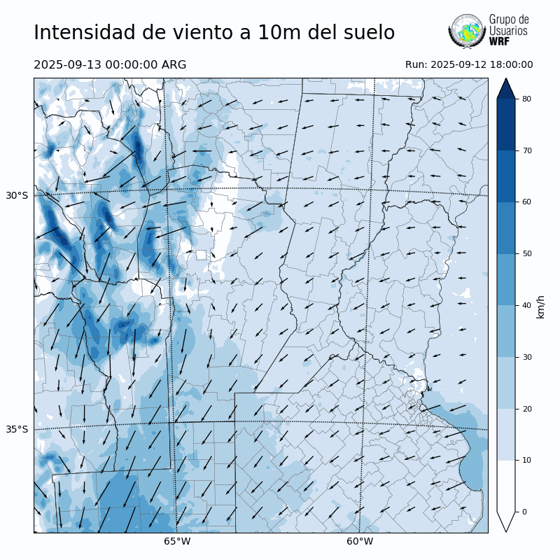 • Intensidad máxima: 5.84 km/h (13/09/2025 05hs.)