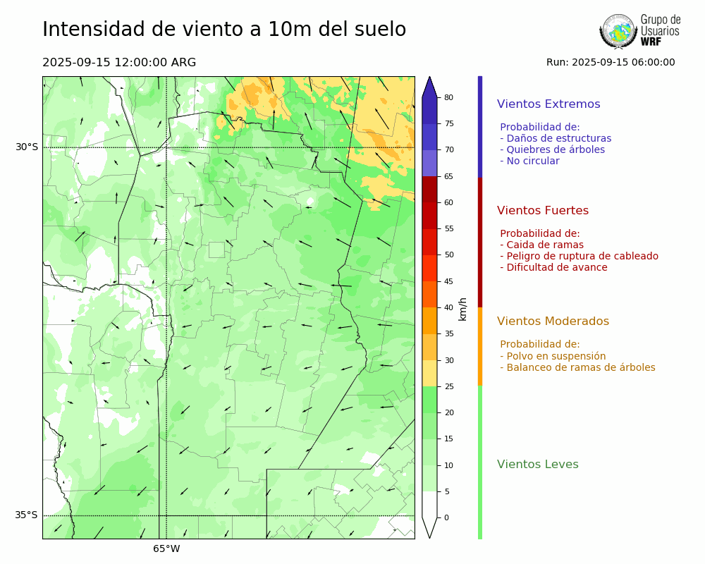 • Intensidad máxima: 12.11 km/h (15/09/2025 20hs.)