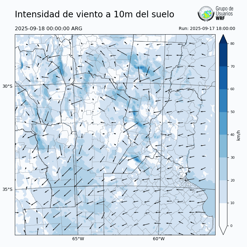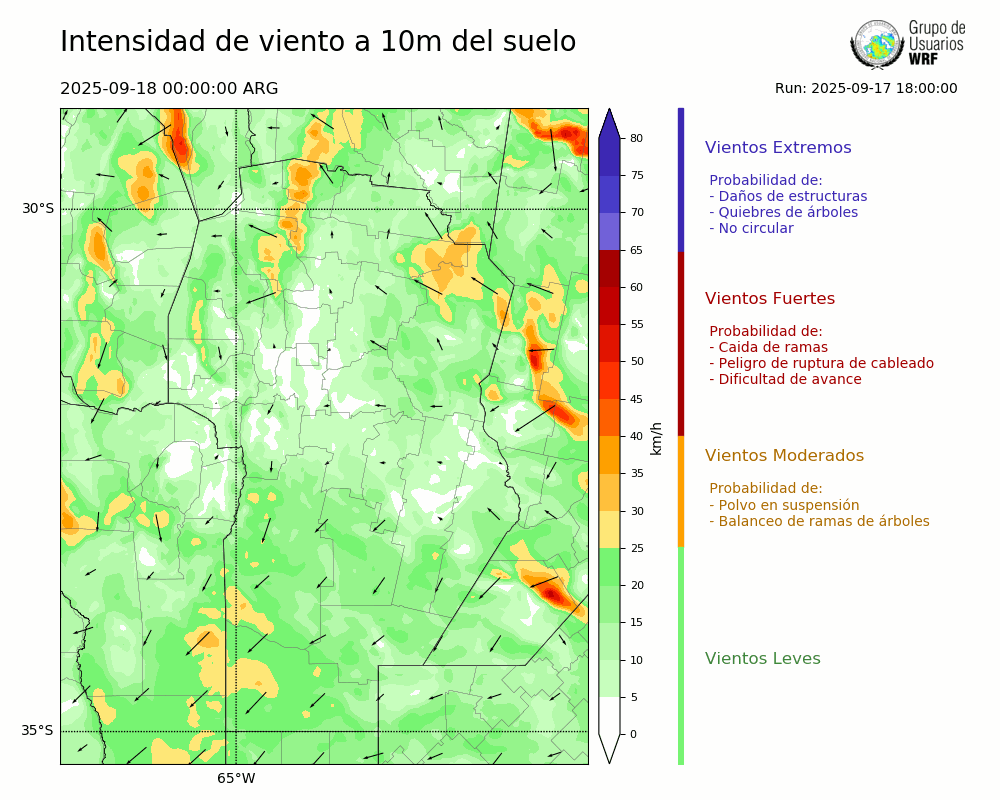 • Intensidad máxima: 10.78 km/h (18/09/2025 11hs.)