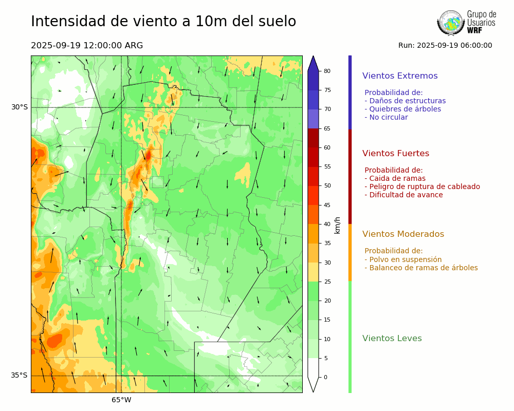 • Intensidad máxima: 20.01 km/h (19/09/2025 19hs.)