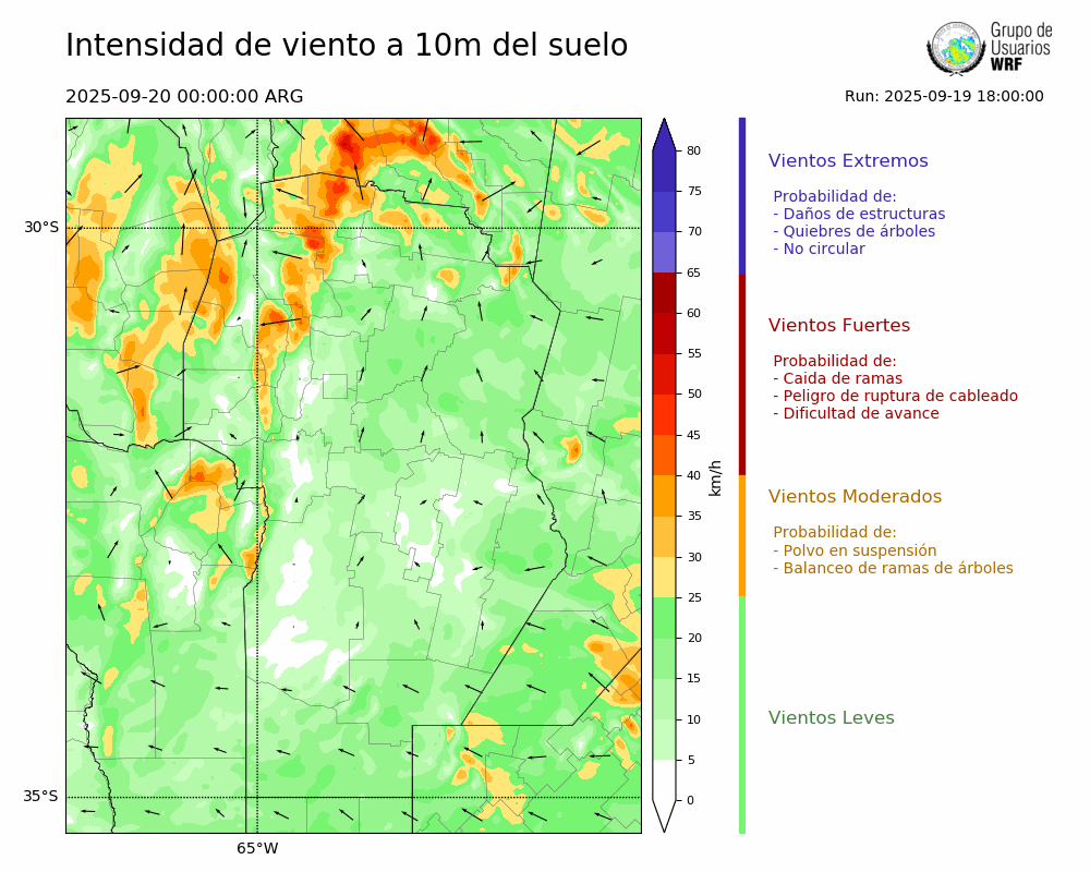 • Intensidad máxima: 11.54 km/h (20/09/2025 11hs.)