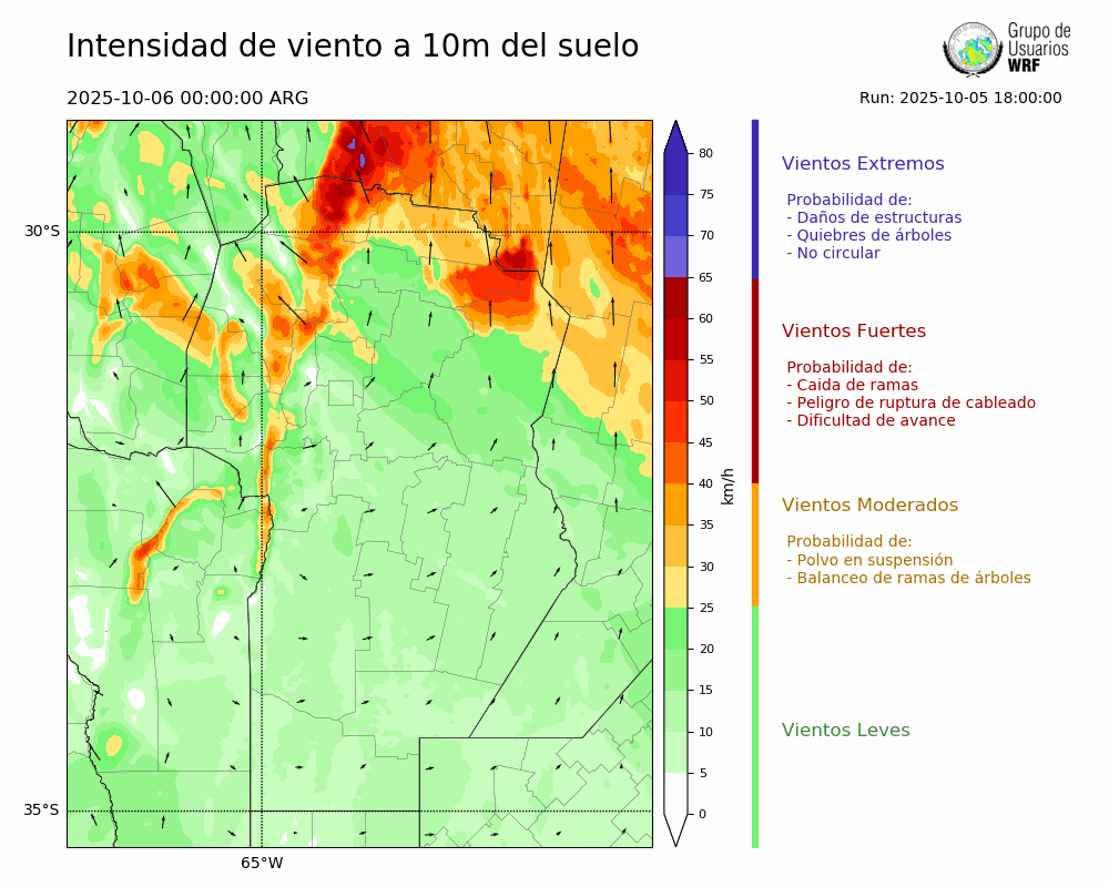 • Intensidad máxima: 11.81 km/h (06/10/2025 03hs.)