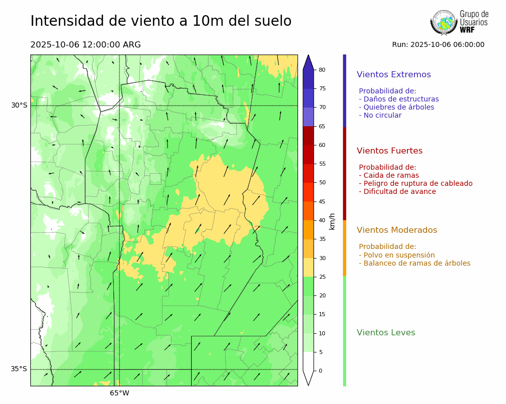 • Intensidad máxima: 11.85 km/h (06/10/2025 12hs.)