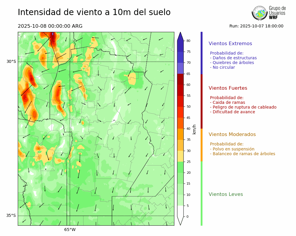 • Intensidad máxima: 20.67 km/h (08/10/2025 11hs.)