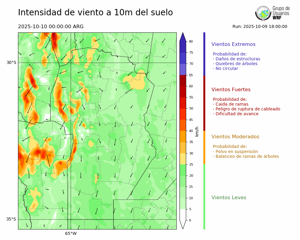 • Intensidad máxima: 25.77 km/h (10/10/2025 11hs.)