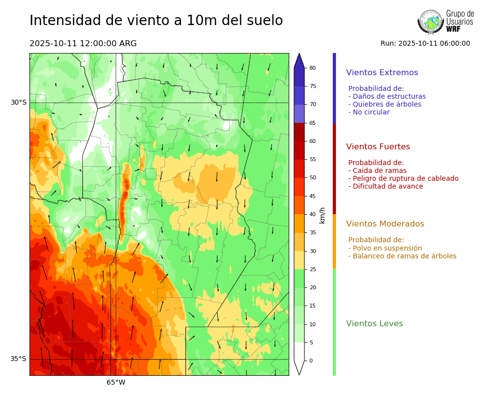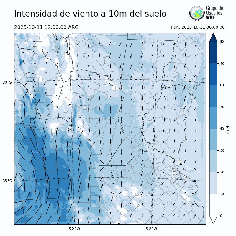 • Intensidad máxima: 32.71 km/h (11/10/2025 16hs.)