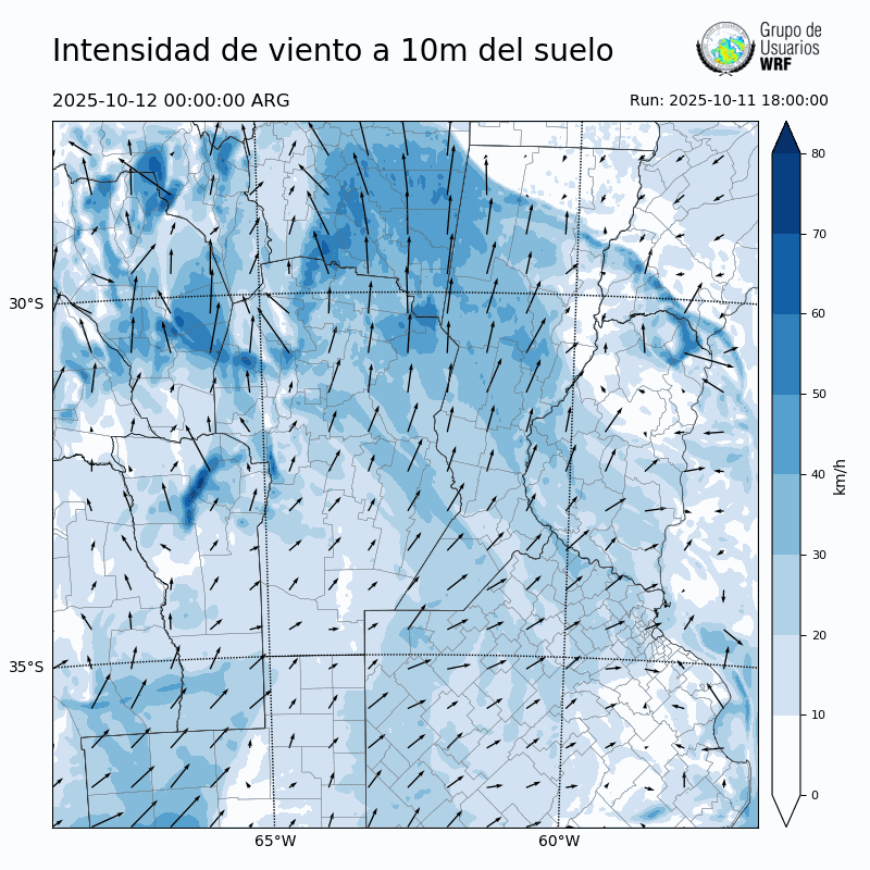 • Intensidad máxima: 36.28 km/h (12/10/2025 02hs.)
