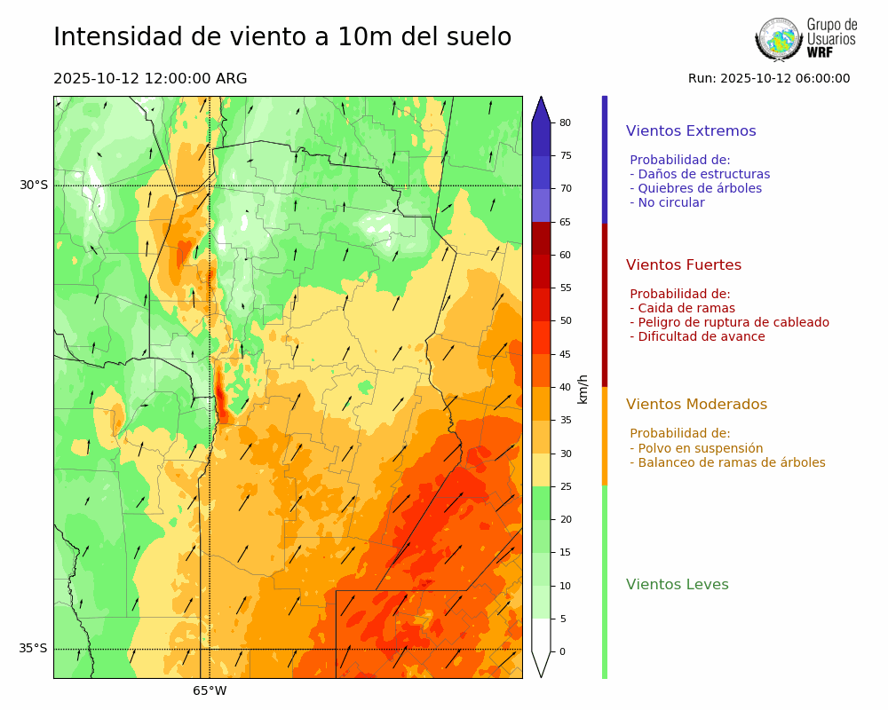 • Intensidad máxima: 18.52 km/h (12/10/2025 12hs.)