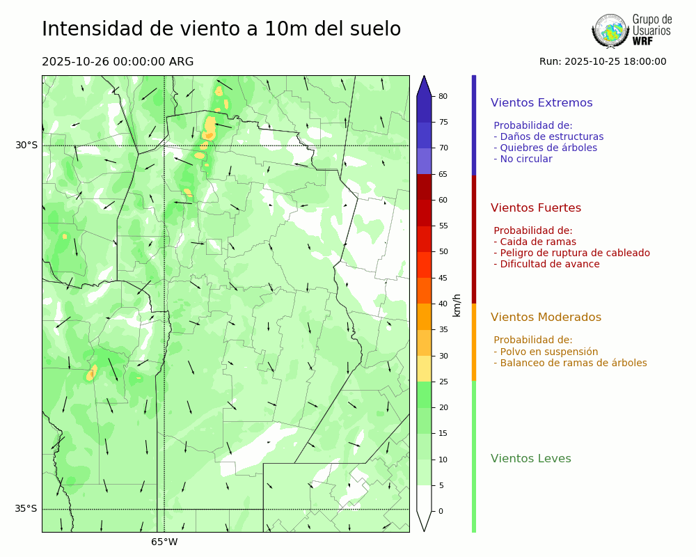 • Intensidad máxima: 14.44 km/h (26/10/2025 10hs.)