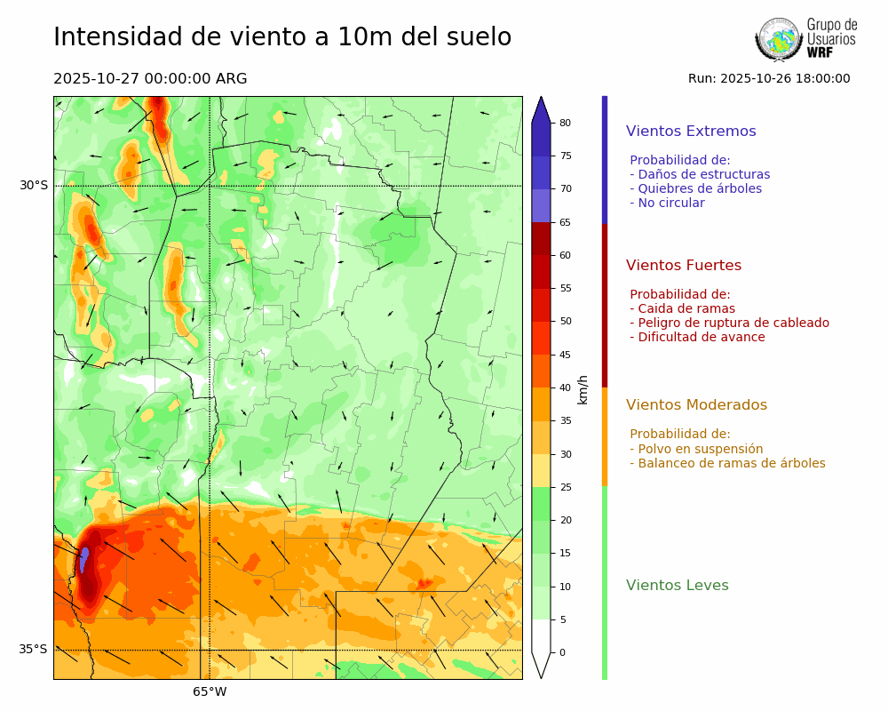 • Intensidad máxima: 26.55 km/h (27/10/2025 10hs.)