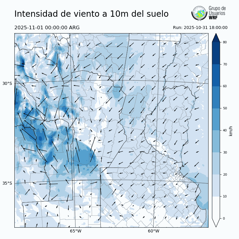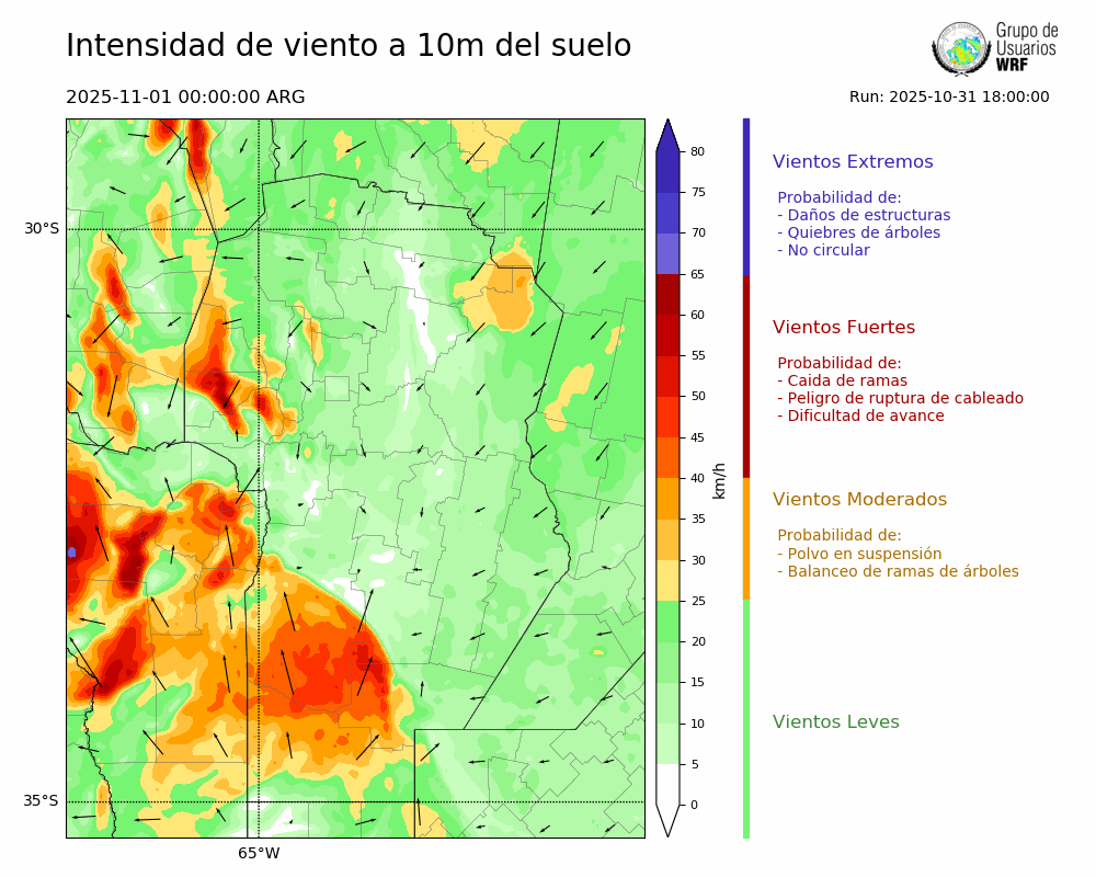 • Intensidad máxima: 18.14 km/h (01/11/2025 05hs.)