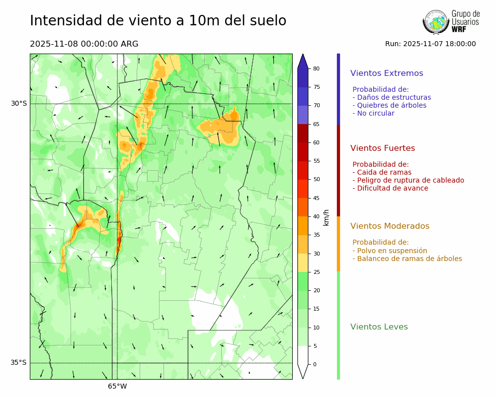 • Intensidad máxima: 13.41 km/h (08/11/2025 00hs.)