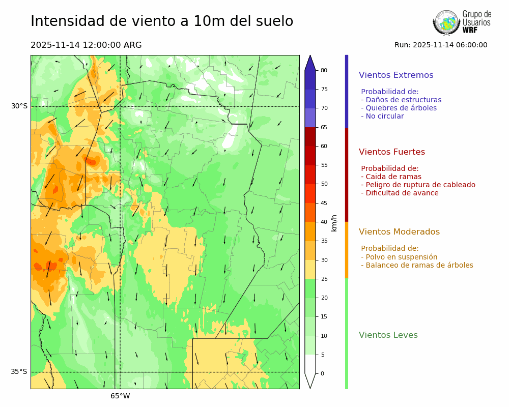 • Intensidad máxima: 22.89 km/h (14/11/2025 17hs.)