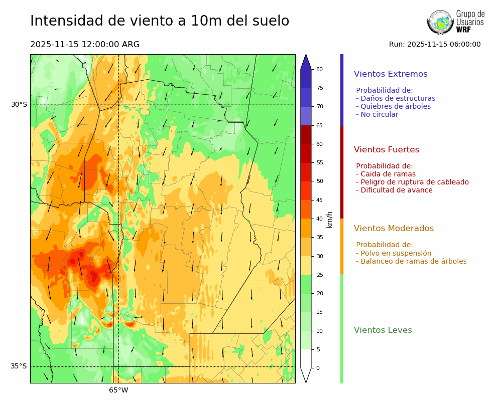 • Intensidad máxima: 9.84 km/h (15/11/2025 13hs.)