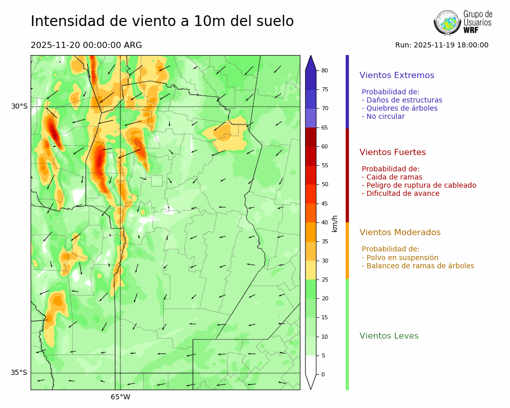 • Intensidad máxima: 9.70 km/h (20/11/2025 08hs.)