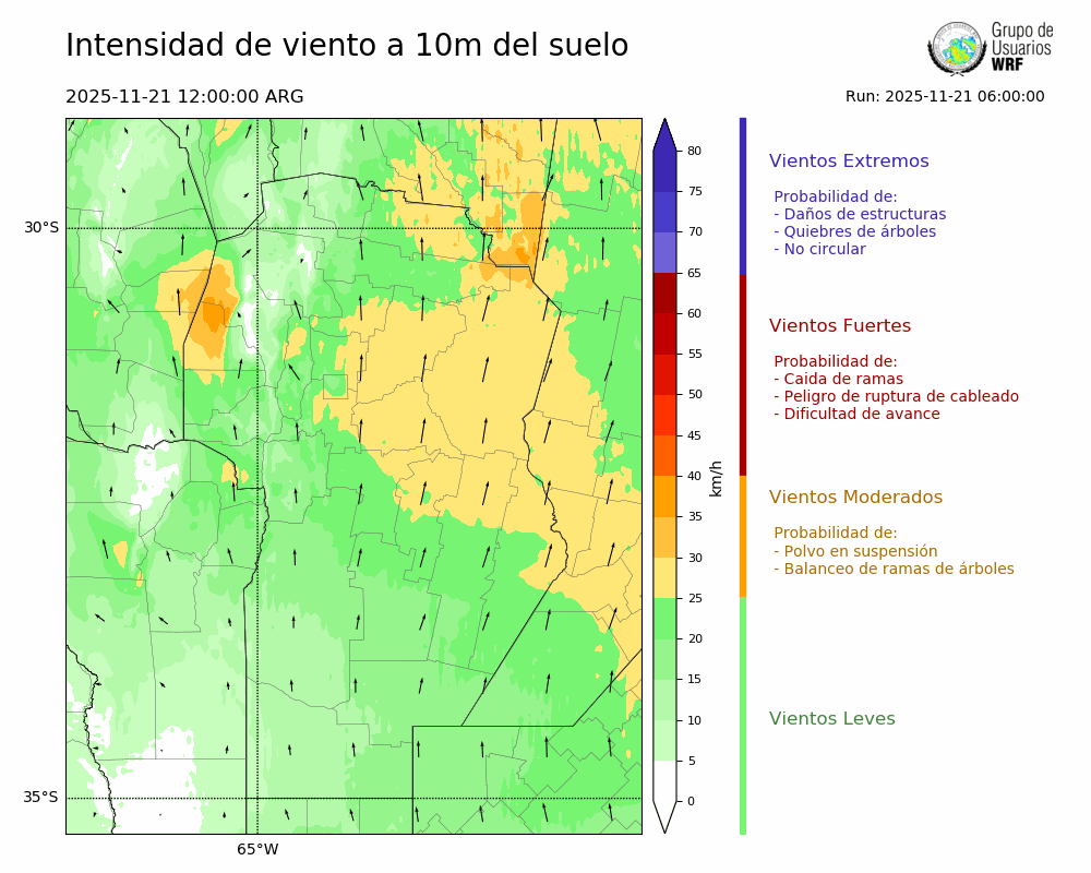 • Intensidad máxima: 18.94 km/h (21/11/2025 12hs.)