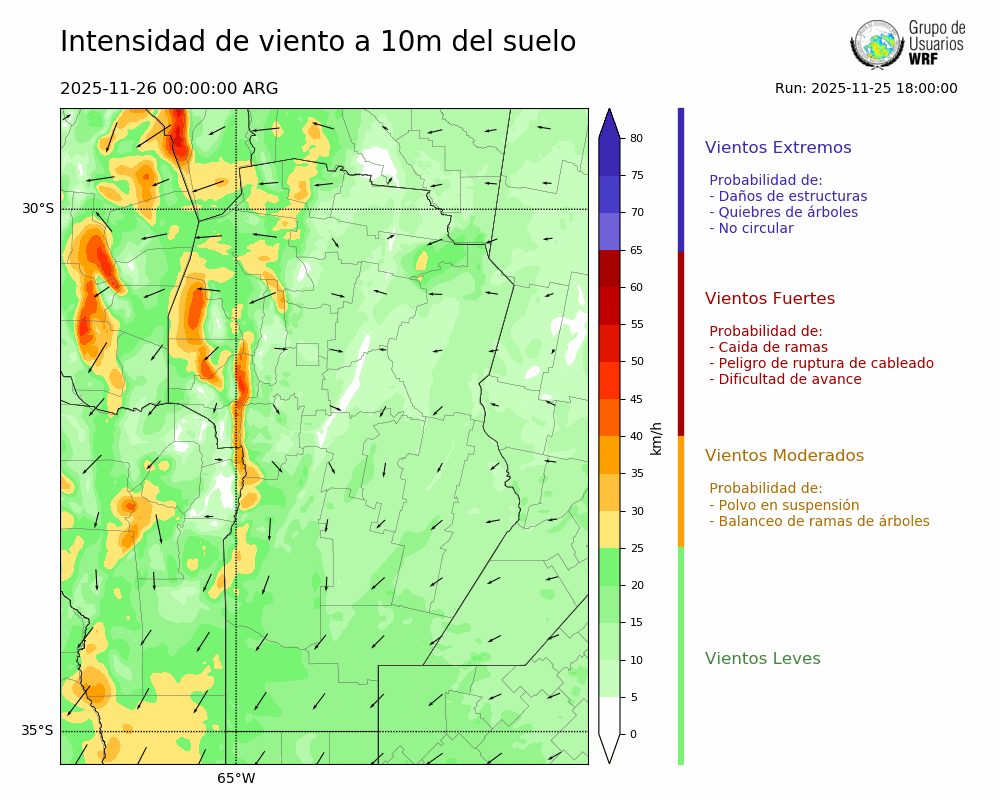 • Intensidad máxima: 6.64 km/h (26/11/2025 04hs.)