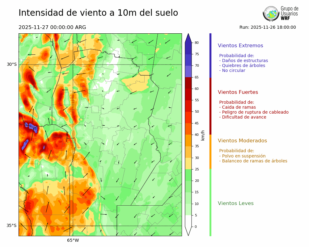 • Intensidad máxima: 25.04 km/h (27/11/2025 04hs.)