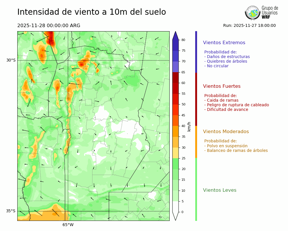 • Intensidad máxima: 23.27 km/h (28/11/2025 04hs.)