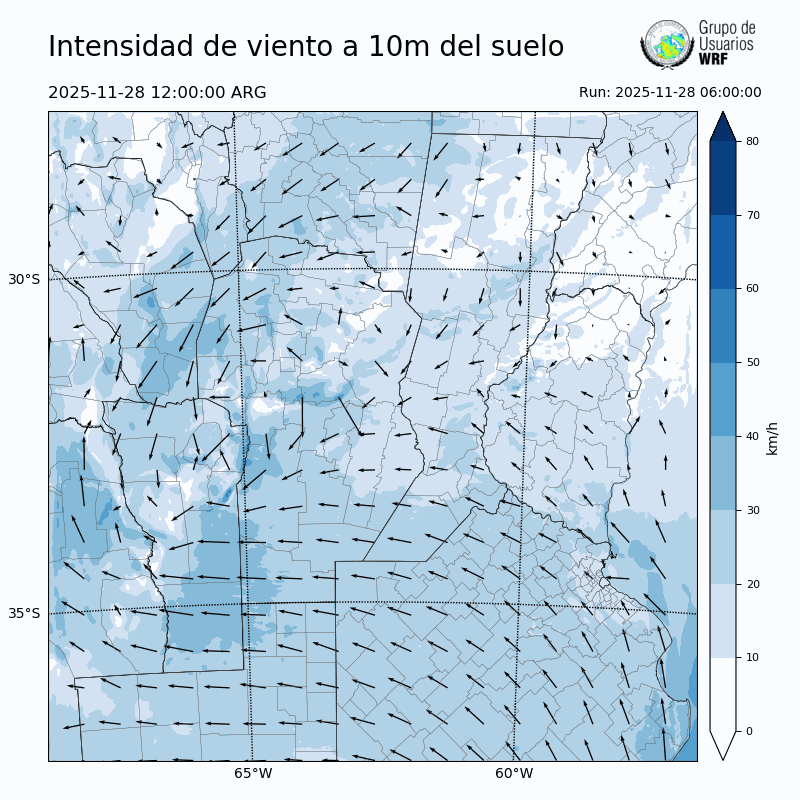 • Intensidad máxima: 12.64 km/h (28/11/2025 20hs.)