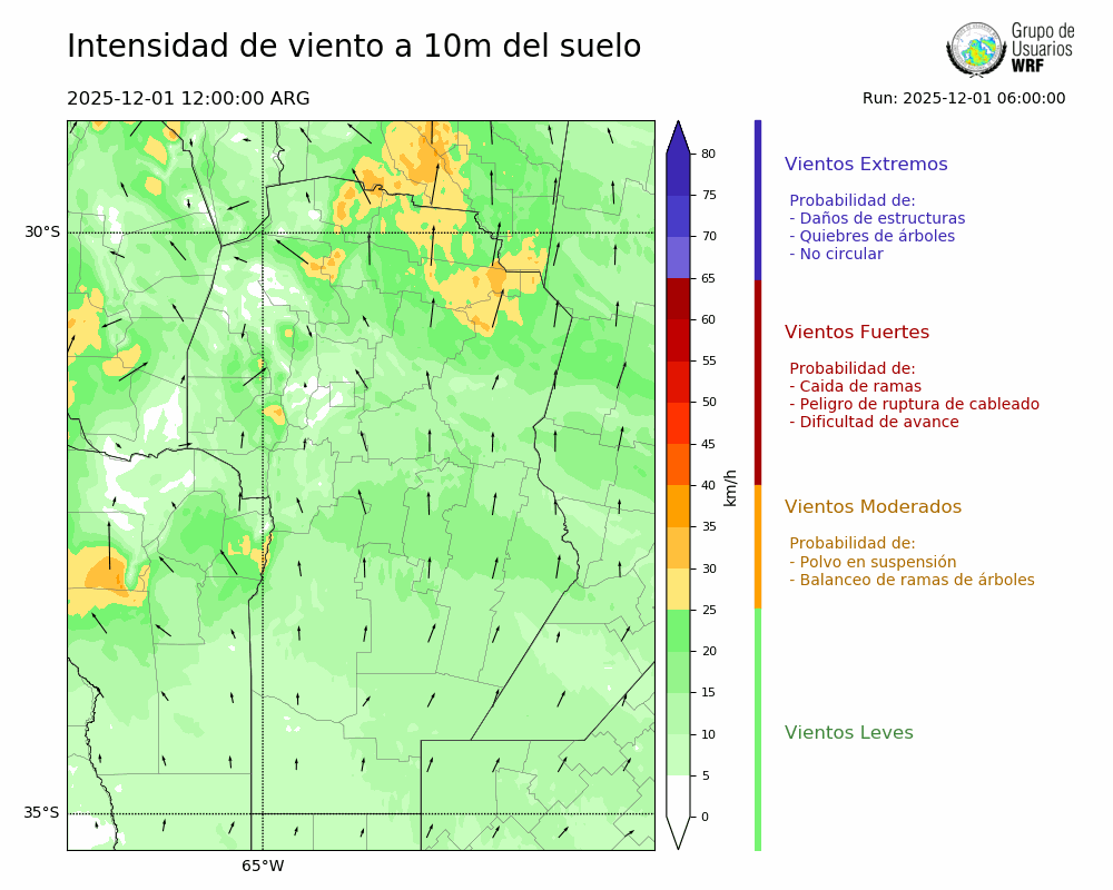 • Intensidad máxima: 8.40 km/h (01/12/2025 15hs.)
