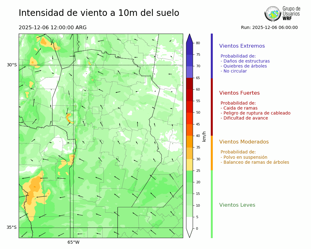 • Intensidad máxima: 17.30 km/h (06/12/2025 19hs.)