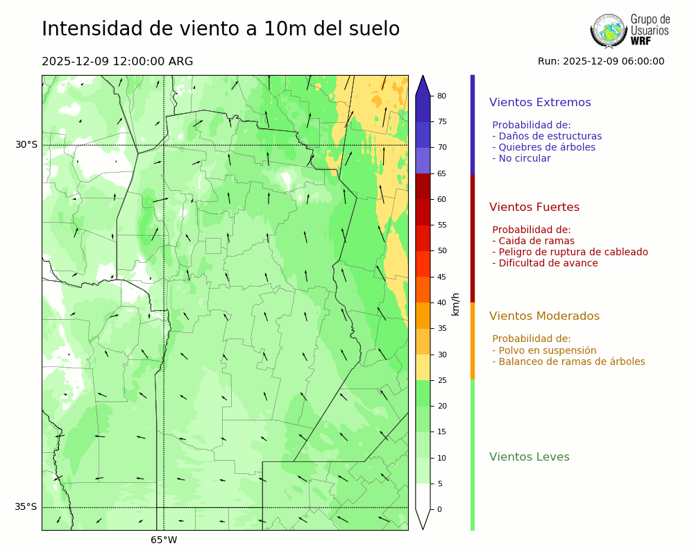• Intensidad máxima: 11.82 km/h (09/12/2025 13hs.)