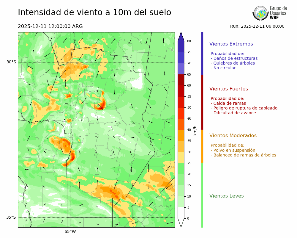 • Intensidad máxima: 23.83 km/h (11/12/2025 12hs.)