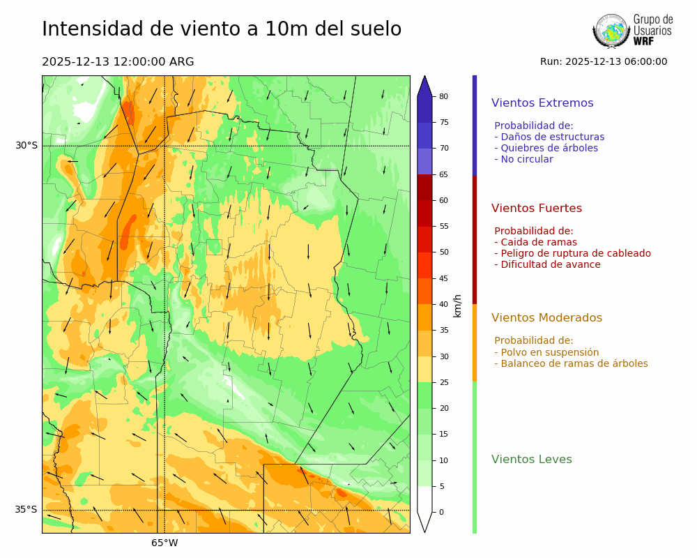 • Intensidad máxima: 23.76 km/h (13/12/2025 22hs.)
