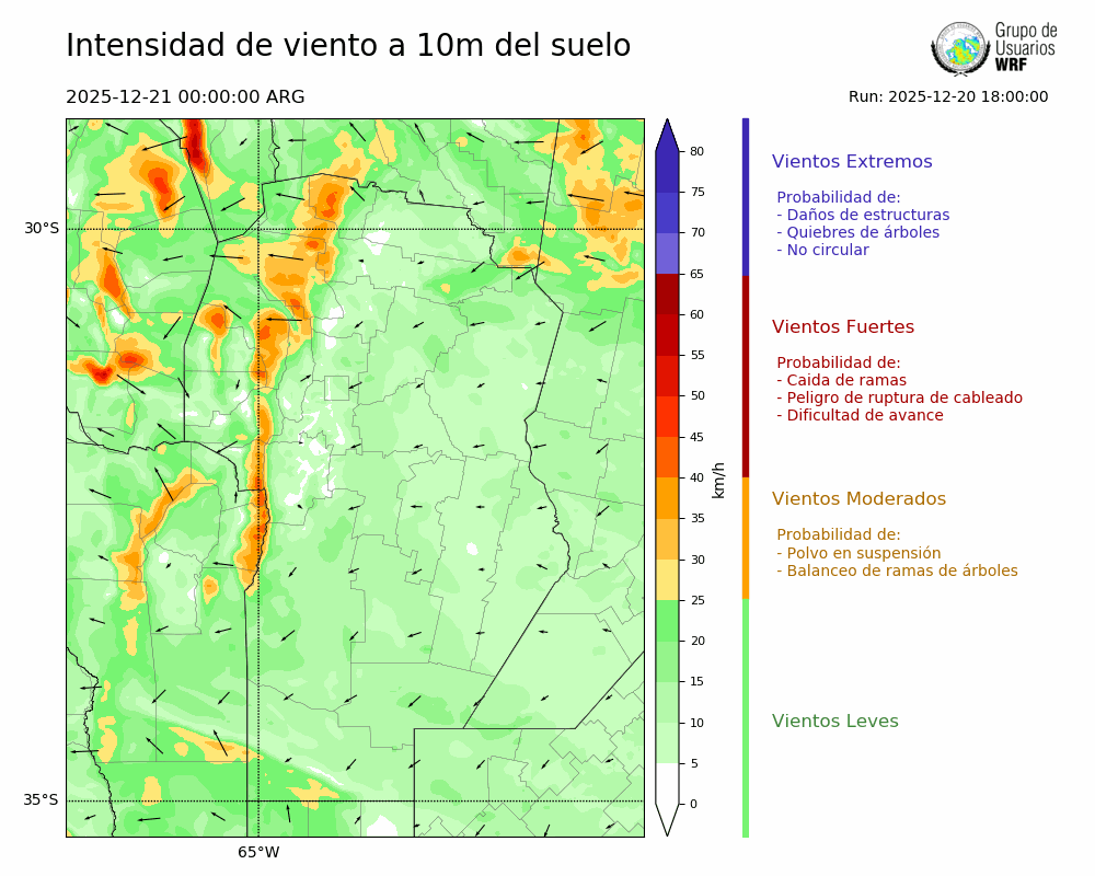 • Intensidad máxima: 19.73 km/h (21/12/2025 11hs.)