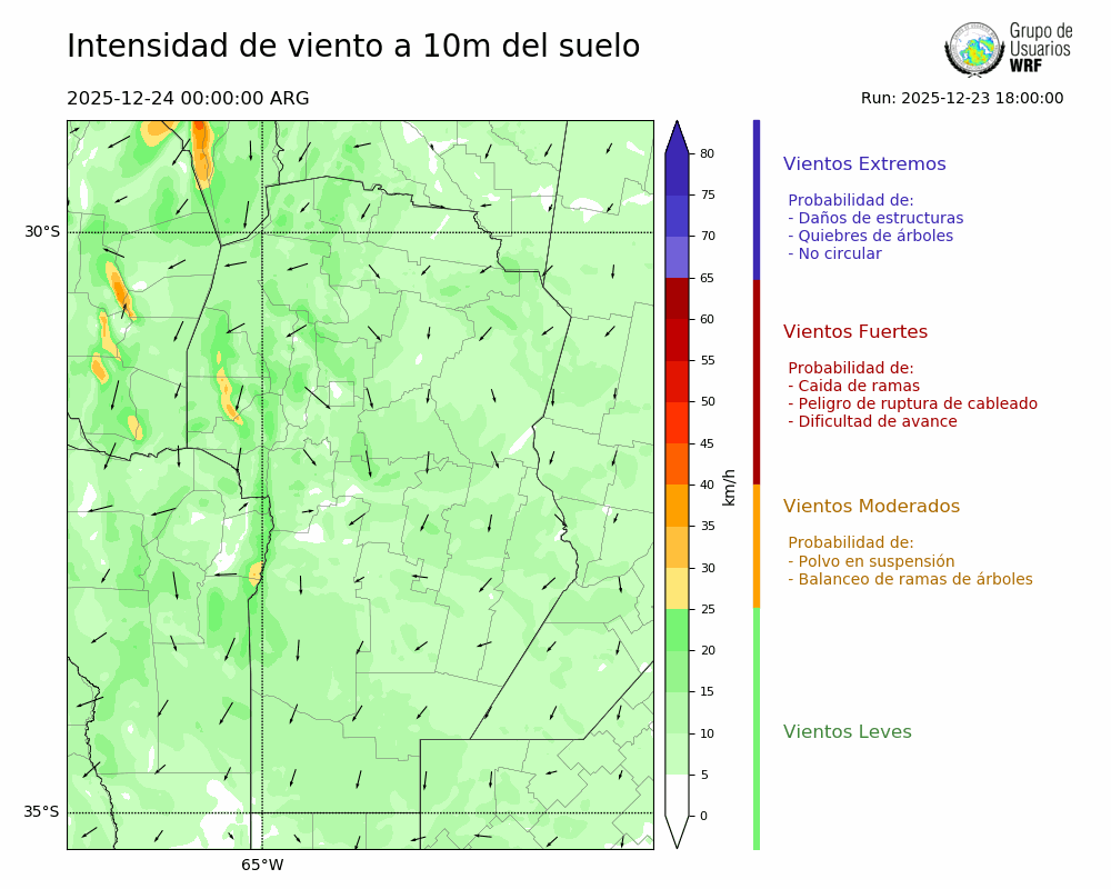 • Intensidad máxima: 3.07 km/h (24/12/2025 02hs.)