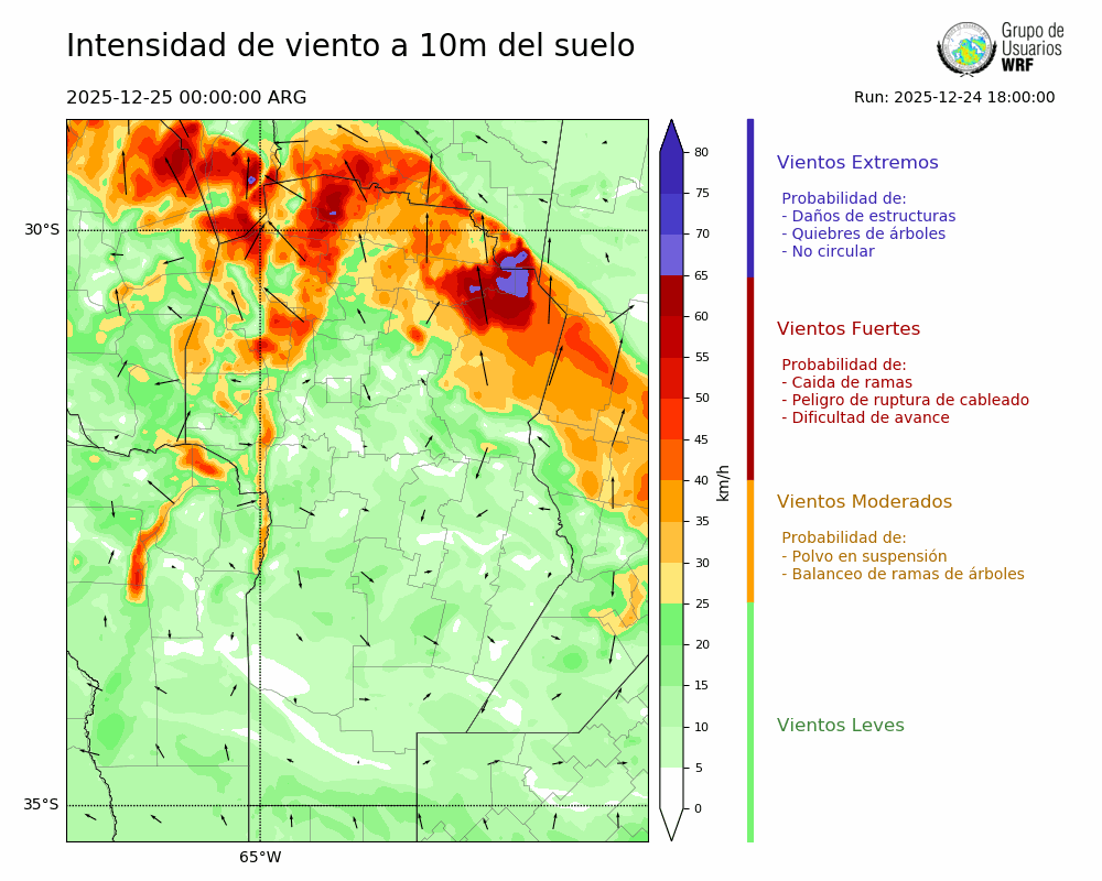 • Intensidad máxima: 31.14 km/h (25/12/2025 05hs.)