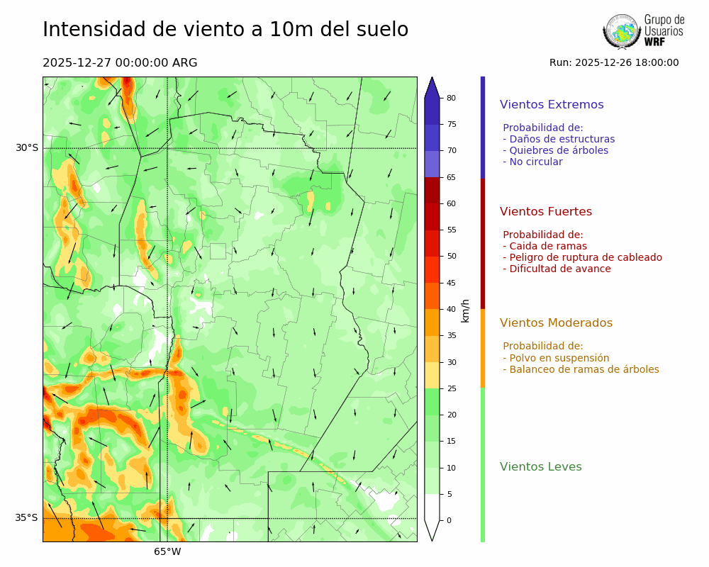 • Intensidad máxima: 23.52 km/h (27/12/2025 07hs.)