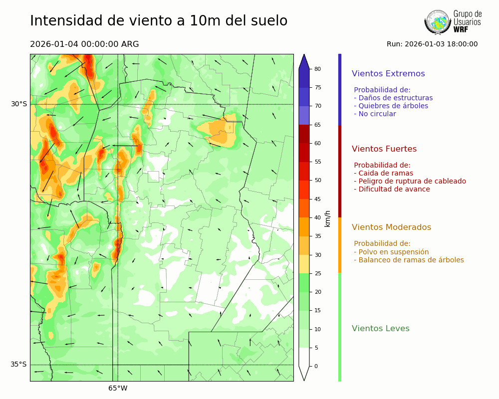 • Intensidad máxima: 6.67 km/h (04/01/2026 11hs.)