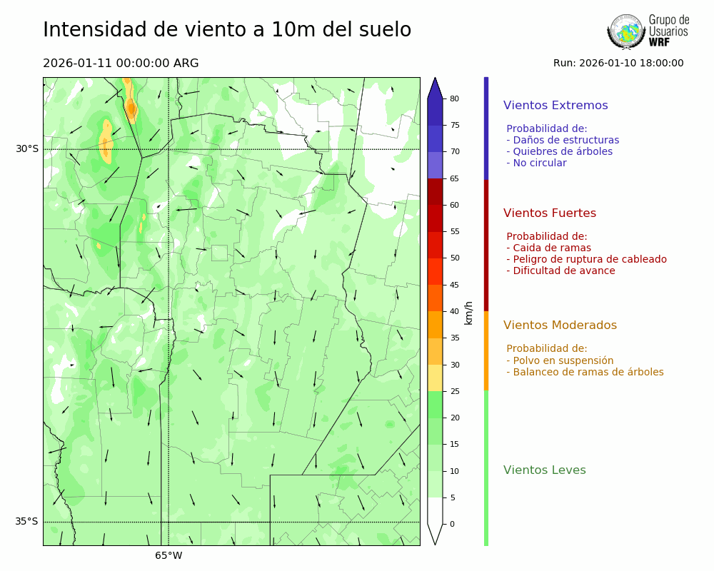 • Intensidad máxima: 10.76 km/h (11/01/2026 10hs.)