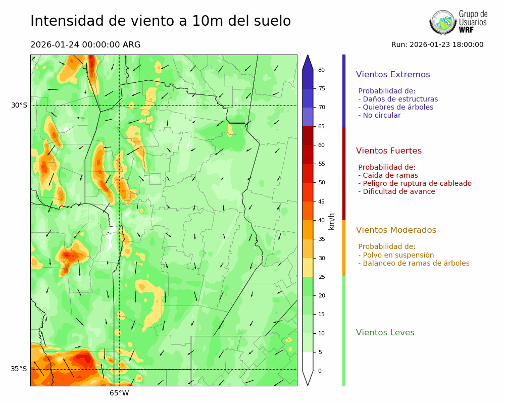 • Intensidad máxima: 20.32 km/h (24/01/2026 11hs.)
