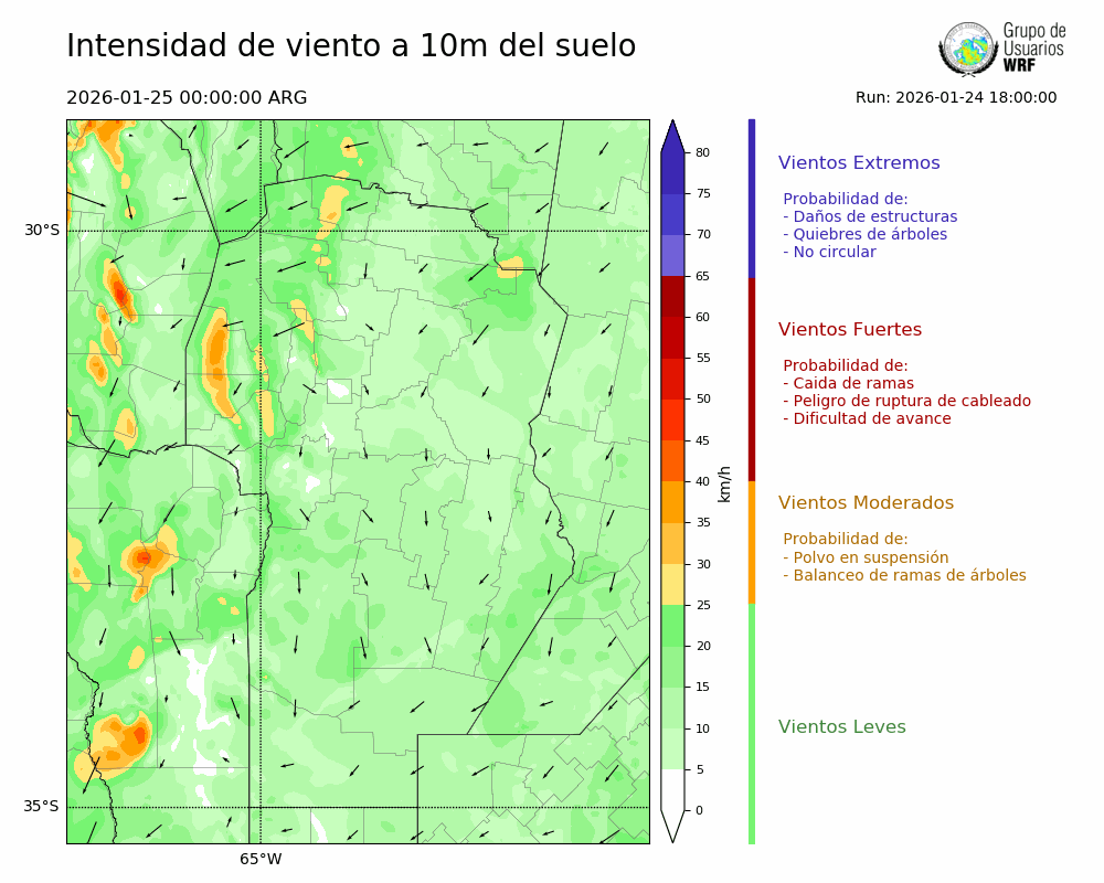 • Intensidad máxima: 20.45 km/h (25/01/2026 11hs.)