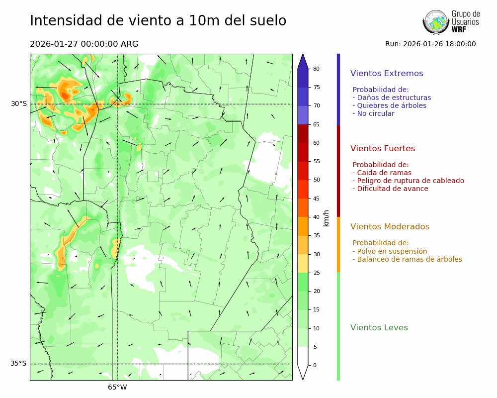 • Intensidad máxima: 15.57 km/h (27/01/2026 05hs.)