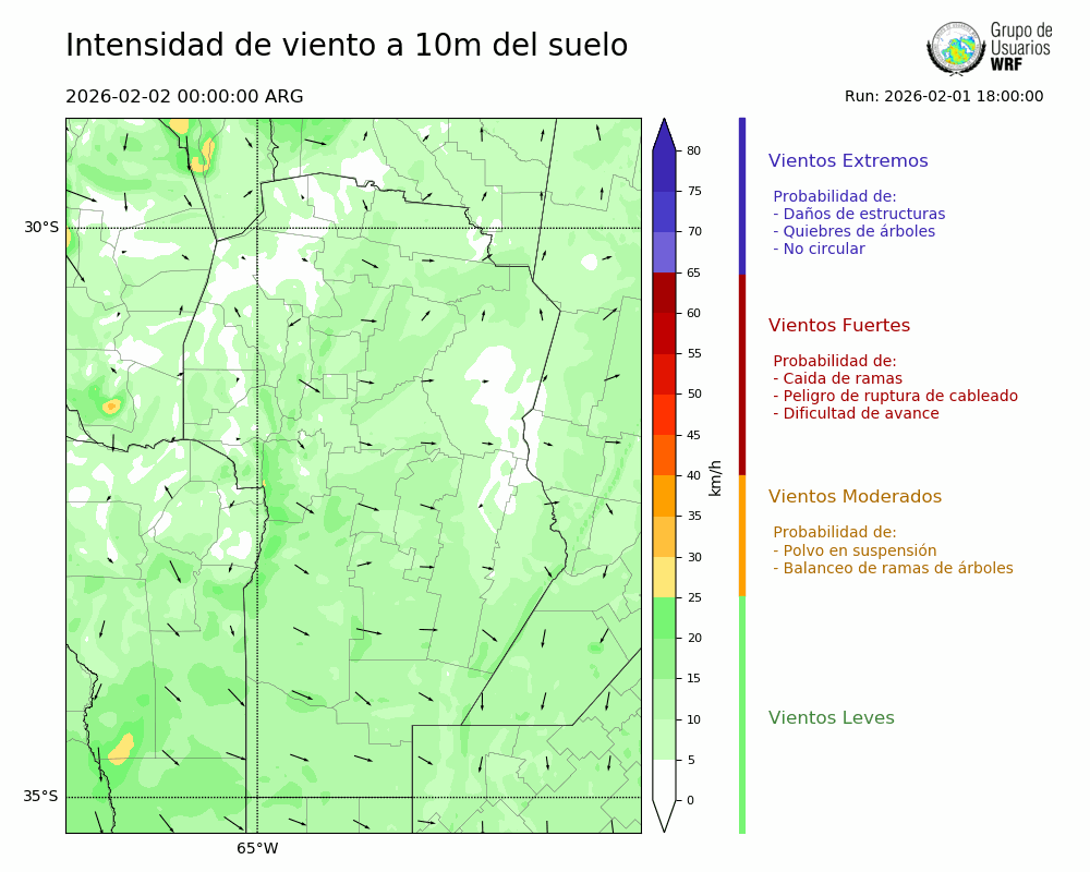 • Intensidad máxima: 7.85 km/h (02/02/2026 08hs.)