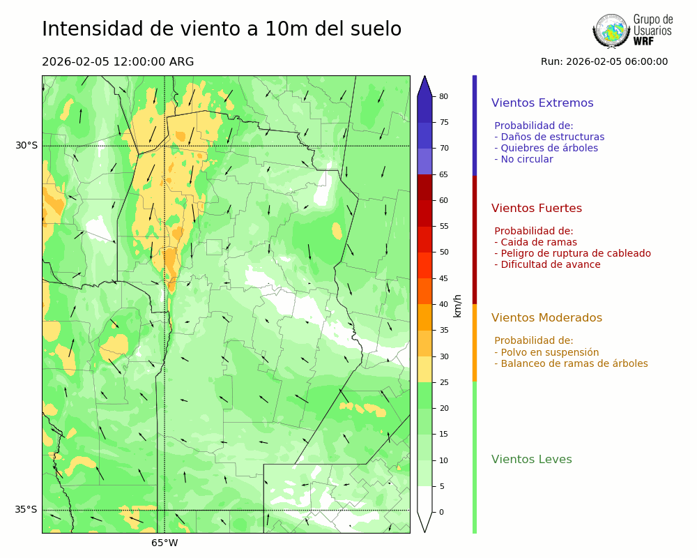 • Intensidad máxima: 30.46 km/h (05/02/2026 19hs.)