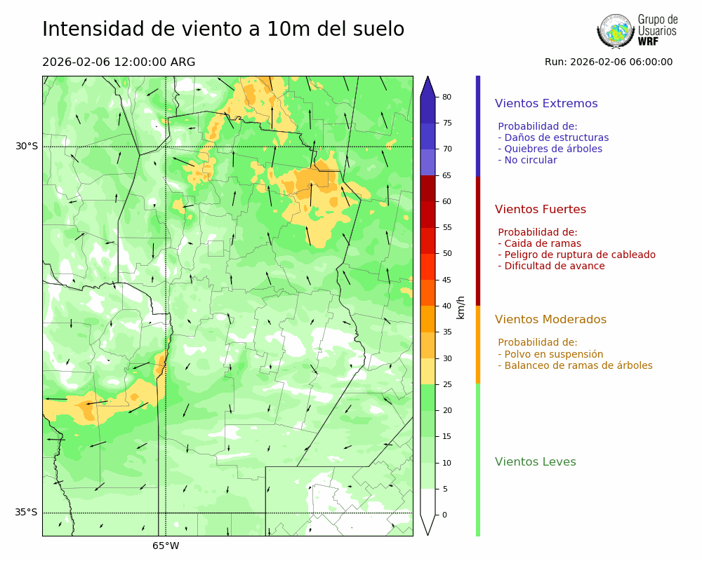 • Intensidad máxima: 12.93 km/h (06/02/2026 15hs.)