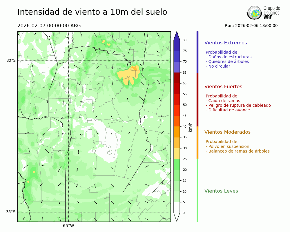 • Intensidad máxima: 6.35 km/h (07/02/2026 06hs.)