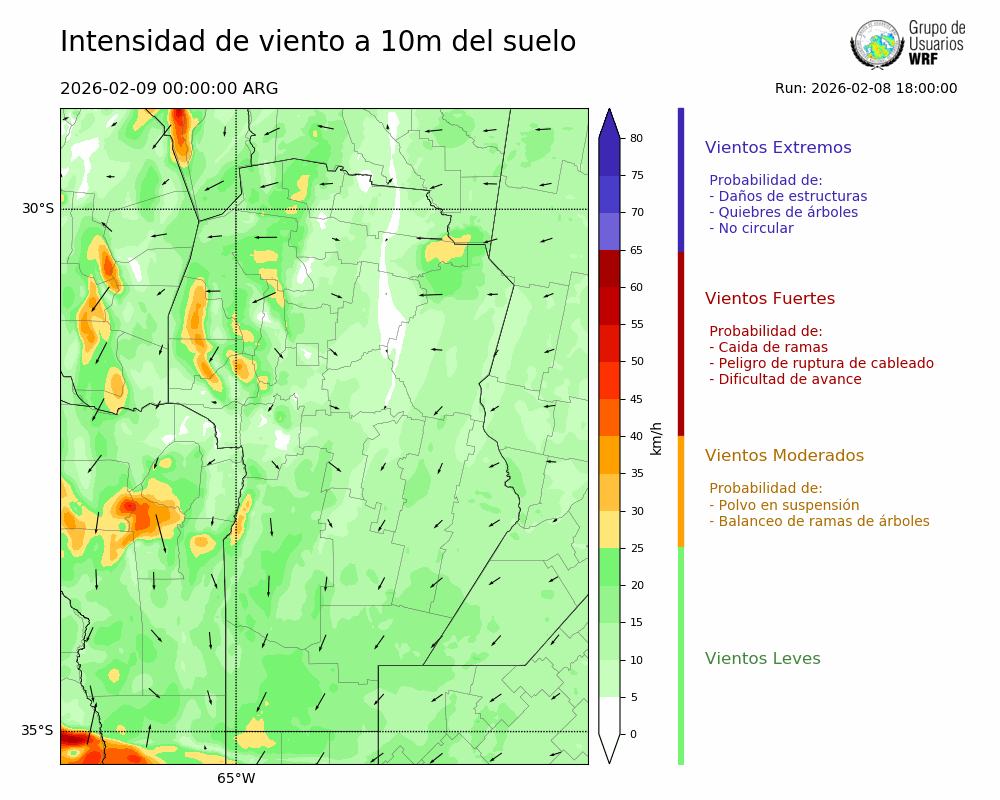 • Intensidad máxima: 26.56 km/h (09/02/2026 11hs.)