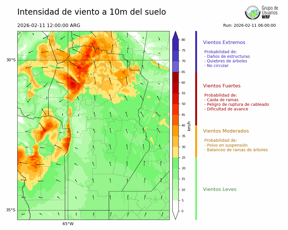 • Intensidad máxima: 8.15 km/h (11/02/2026 16hs.)
