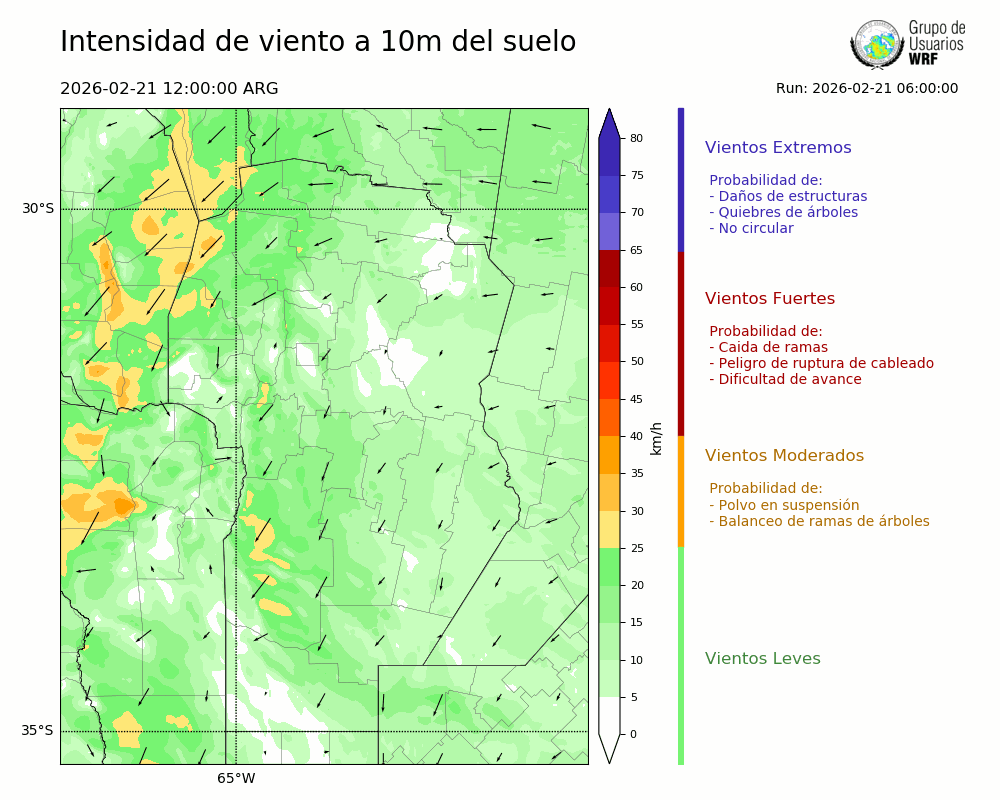 • Intensidad máxima: 15.01 km/h (21/02/2026 20hs.)
